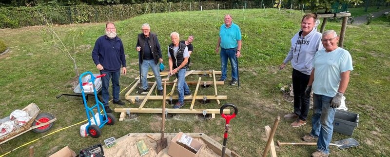 Zwar war der Begriff "schräg" nicht mit den deutschen Bauvorschriften in Einklang zu bringen, aber bunt sollte es werden. Zwölf Clubmitglieder zimmerten in mehreren Einsätzen das Spielhaus für die Kinder. Die Materialkosten beliefen sich auf rund 1.500 Euro und wurden von den Mitgliedern des Clubs getragen.