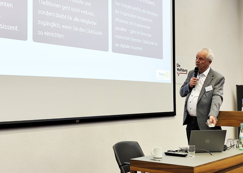 “Mehr Zeit für das Wesentliche. Wie KI die Arbeit im Rotary Club erleichtern kann” – unter diesem Titel stellte Michael Timmermann bei der Halbjahreskonferenz in Mülheim a. d. Ruhr eine KI-gestützte digitale Hilfe für Präsidenten, Sekretäre, Governors und weitere rotarische Funktionsträger vor. Timmermann nennt sein selbstentwickeltes Tool kurz Club-Guide.