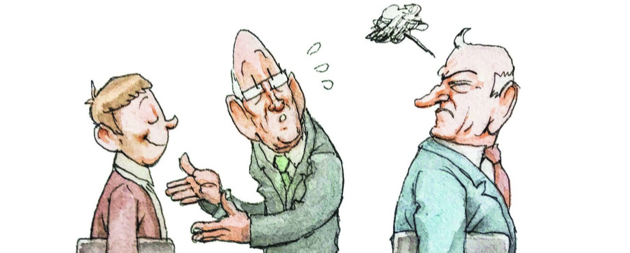 Pröpke und Dr. Krümelein fassten sich ein Herz und versuchten Wurmkloß zu vermitteln, dass es Zeit sei für einen Generationswechsel. Jungrotarier Wasserlos sollte die Homepage übernehmen.