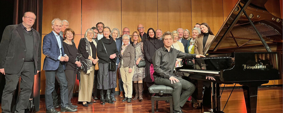 Interpret war der in Usbekistan geborene und in Moskau ausgebildete Pianist Evgeny Konnov. Konnov hatte vor nicht allzulanger Zeit sein Klavierstudium bei Professor Jan Jiracek von Arnim in Wien abgeschlossen (RC Wien). Rund zwei Dutzend Mitglieder des Rotary Clubs Böblingen-Schönbuch versammelten sich nach dem triumphalen Konzertende gemeinsam mit dem Pianisten auf der Bühne.