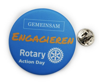 Ob Mitmach-Aktion, Spenden-Event oder gemeinsame Initiative: Die rotarische Familie bewegt viel und das soll bereits jetzt deutlich werden und sichtbar sein: Ordern Sie den Action-Day-Button und werben Sie für Ihre Aktionen! Und zwar nicht nur am Action Day – er kann bei jeder Aktion getragen werden!