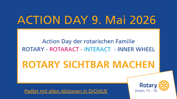 Der Action Day hat sich in den letzten Jahren zu einem echten Highlight entwickelt. Er findet immer am Samstag vor Himmelfahrt statt – im Jahr 2026 also am 9. Mai! Rotary, Rotaract, Interact, Inner Wheel und ihre Familien packen gemeinsam an und zeigen, was die rotarische Familie gemeinsam bewegen kann.