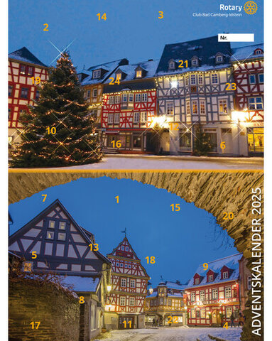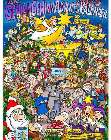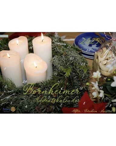 Viele Rotary und Rotaract Clubs erstellen und verkaufen — zum Teil gemeinsam mit Inner Wheel Clubs — auch in diesem Jahr wieder Adventskalender. Diese Aktion lässt sich langfristig gut organisieren und erfreut sich großer Beliebtheit. Hier finden Sie eine Auswahl der Kalender aus dem Jahr 2025.