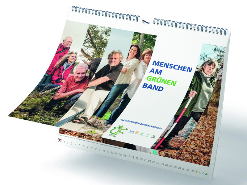Der immerwährende Kalender „Menschen am Grünen Band“ im Distrikt 1880 verbindet die Landschaft des Grünen Bands mit den engagierten Persönlichkeiten, die sich hinter den Kulissen für Erhalt und Ausbau einsetzen. Mit einer Spende von 10 Euro beim Kauf des Kalenders im A2-Format wird das Wiedervernässen von Moorflächen ermöglicht, die im und am Grünen Band liegen.